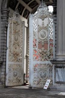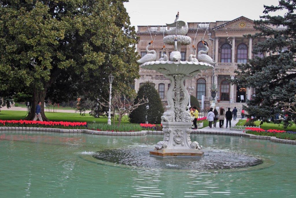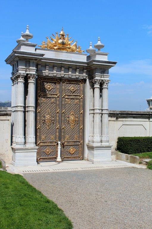 The palace has 285 rooms, 44 halls (ceremonial reception rooms), 68 toilets and 6 Turkish baths. It is the largest palace in Turkey covering 14,500 square meters (157,000 square feet). It was beyond ornate! Gilt covered everything. It is said that 15 tons of gold was melted for the decorating. There were no photos allowed inside but I took some photos of the pictures in the brochure to give you an idea. (They are not really sharp photos, I’m afraid. I was too lazy to set up the tripod.)