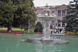 The palace was constructed on land created in the 17th century when the bay used by the navy fleet was filled in. The new land was used as an Imperial Garden. There were several buildings on the site but they were demolished and construction of Dolmabahçe Palace took place between 1843 and 1856.