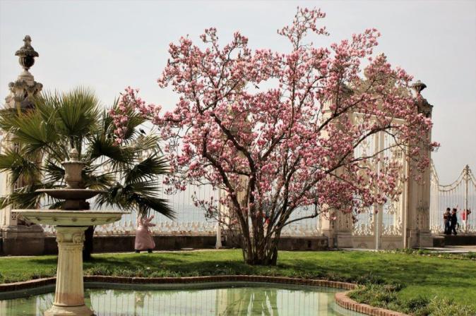 Queen Victoria gifted the Sultan of the day with a 4 1/2 ton crystal chandelier that hangs in the ballroom. I loved Beylerbeyi. It was as ornate as Dolmabahçe but I found it somewhat cozier due to the smaller size. From the water you can get a lovely view of the two bathing pavilions – one for the harem women and another for the men.