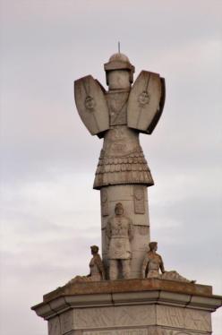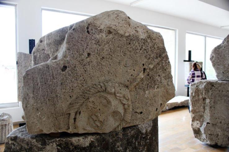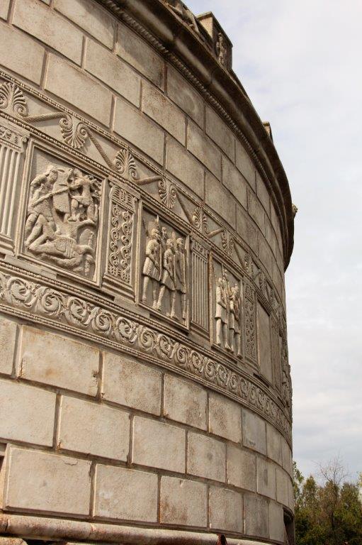 We visited the reconstructed Monument of Tropaeum Traiani. The site was discovered about 1900 and became one of the most important antique Roman monuments in the nation. Emperor Traiani ordered a Triumphal Monument (to honour victory in battle), a mausoleum for the incinerated remains of a formidable officer who died in the battle during which the Romans defeated Dacia (102 AD), and a cenotaph inscribed with the names of more than 3,000 soldiers. Today, the facings on the monument are copies and the original base reliefs are in the nearby museum. They have 49 of the original panels. Three more are in the museum in Bucharest and the location of one is unknown.