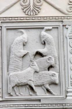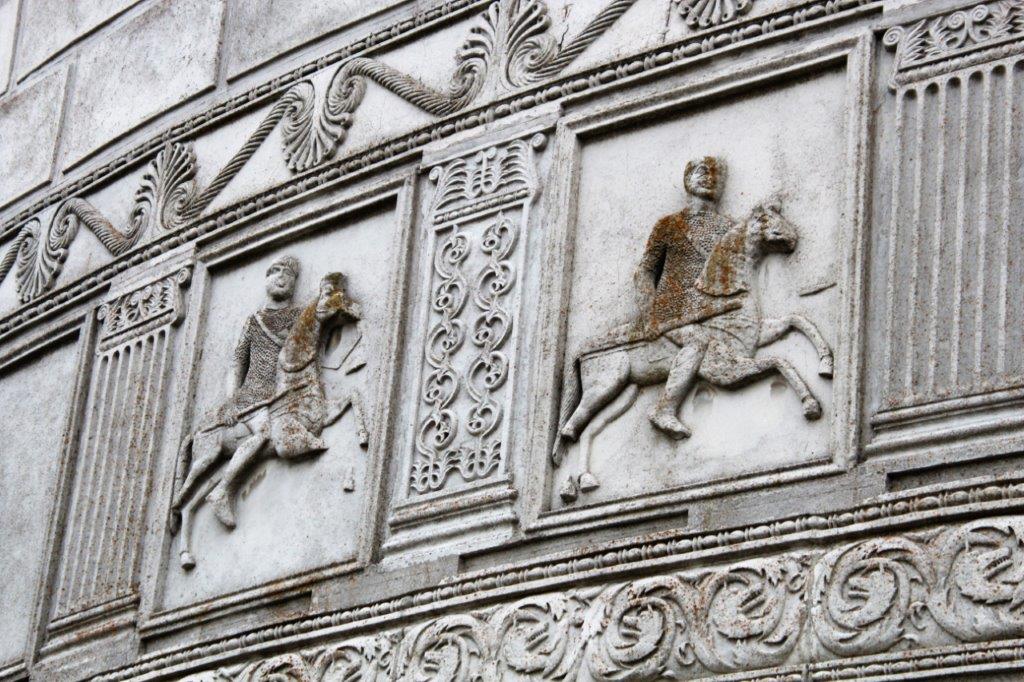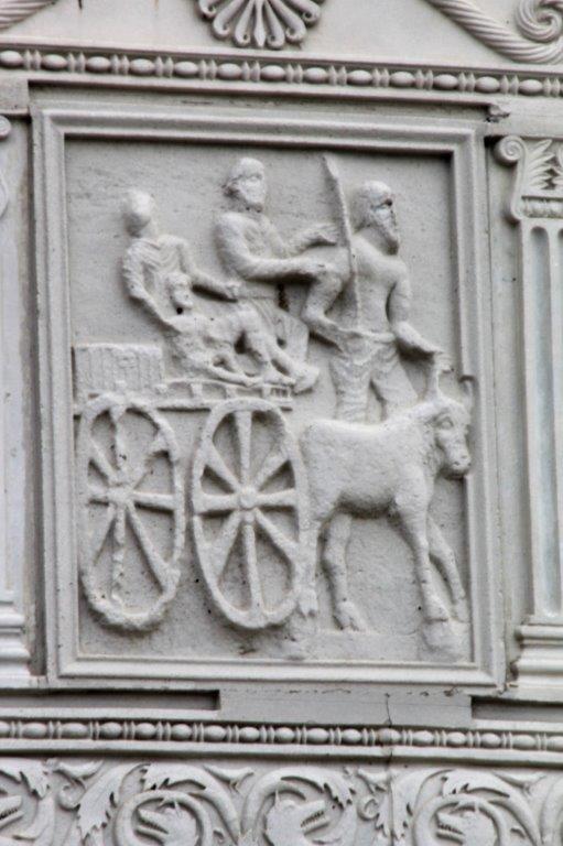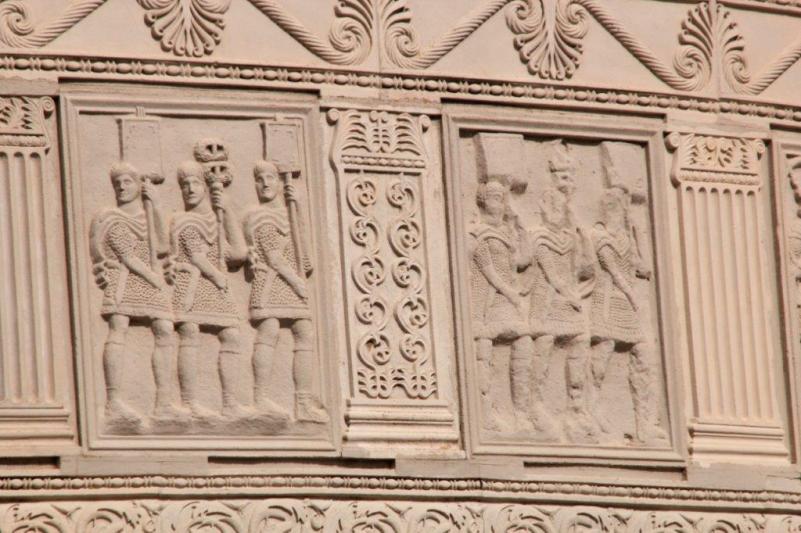 The scenes carved into the façade, known as metopes, commemorate and glorify the battle.