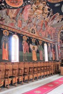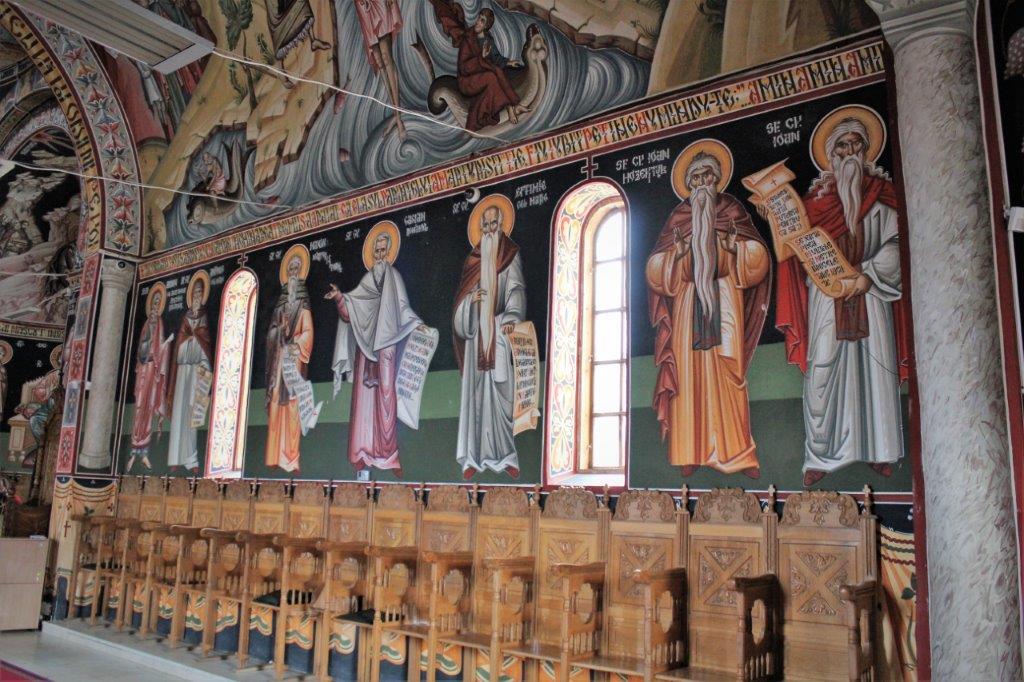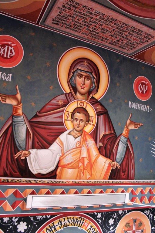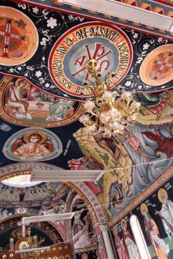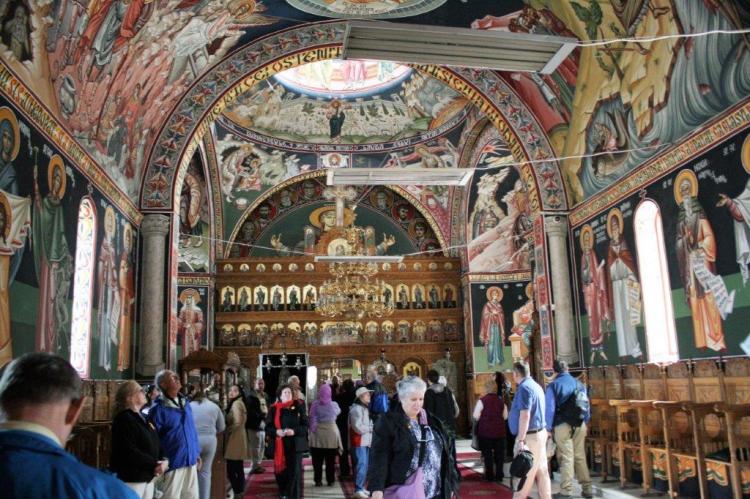 The Orthodox Church was very bright with paintings of all the apostles, many designs, and symbols.