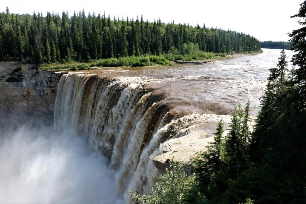 As we were leaving the viewing platform at Alexandra Falls, there was a group of people having their photo taken by one of them. John offered to take a photo of them all, which they were pleased to have him do. Then one of the young men said, “Do you want to take a picture of us? We’re a bunch of crazy Indians.” John laughed and took their photo.