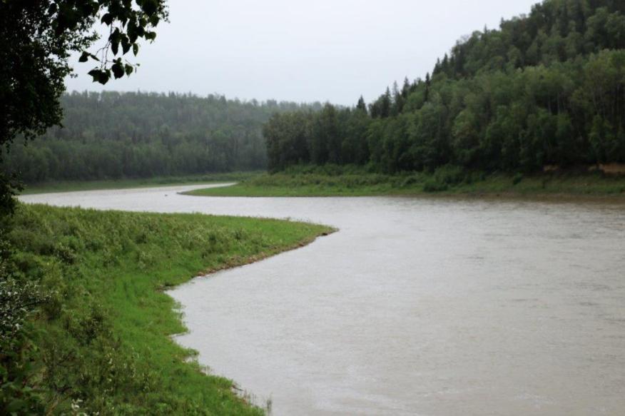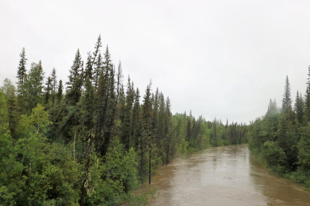 There is one geocache in Fort Simpson and one in Fort Liard. We didn’t find either of them since both were hidden in the bush – the one at Fort Liard was also on top of a steep hill – and everything was soaking wet and it was still raining. We parked at the bottom of the hill in Ft. Liard, beside the Liard River, and had some lunch, then headed back to the main highway and carried on.