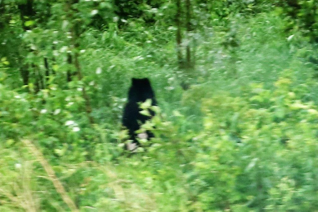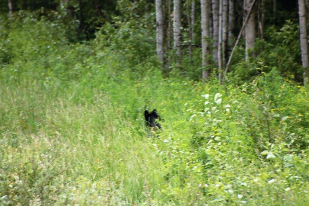 We also saw another bear cub. It was sitting beside the road as we drove up and by the time we realized it was a cub it was hightailing into the bushes. The black blob is all I managed to catch with the camera.