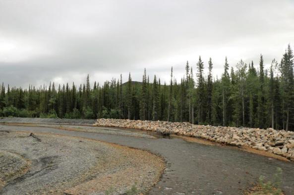 The bridge over the Eagle River is built on permafrost. The pilings supporting the structure were driven 30-meters (98′) into the ground, passing through a 10-meter (33′) layer of permafrost.