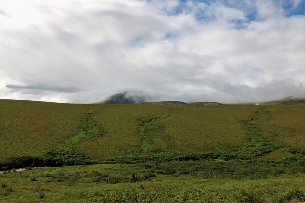We crossed the Vittrekwa Valley, which leaves behind the Richardson Mountains and takes us to the Peel Plateau; a broad upland plateau that continues to the Peel River.