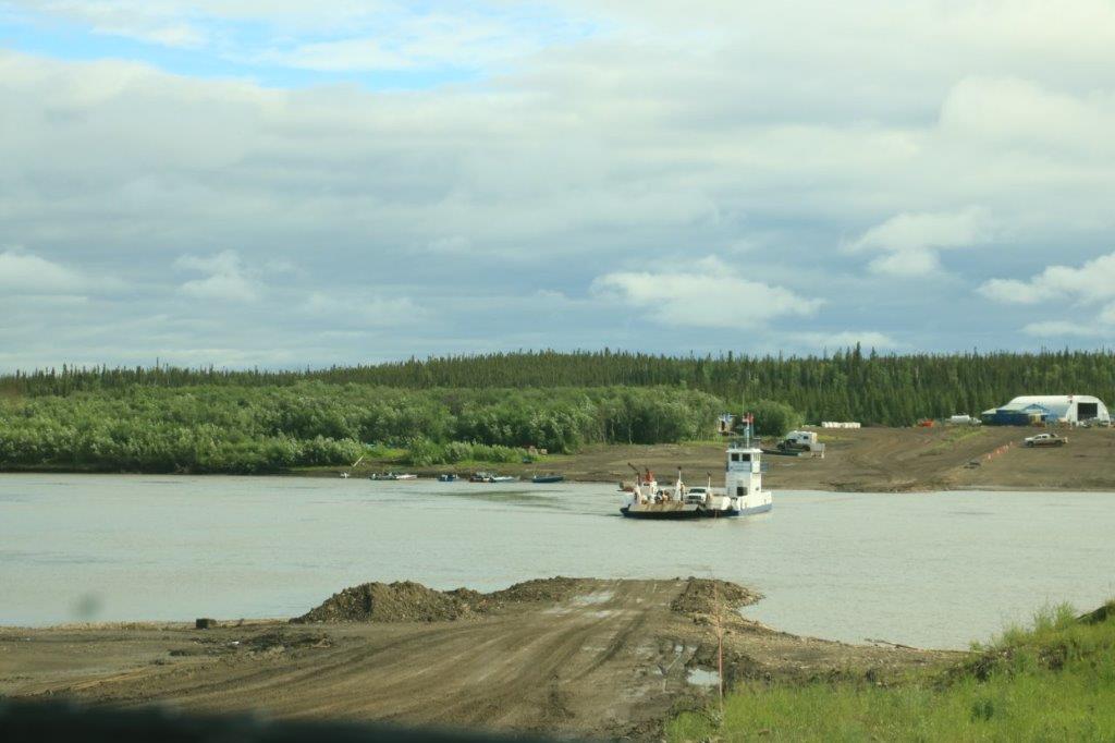 Thirty km from Midway Lake is the Peel River where the ferry comes to whichever side of the river the ferryman sees a car waiting and takes you across.