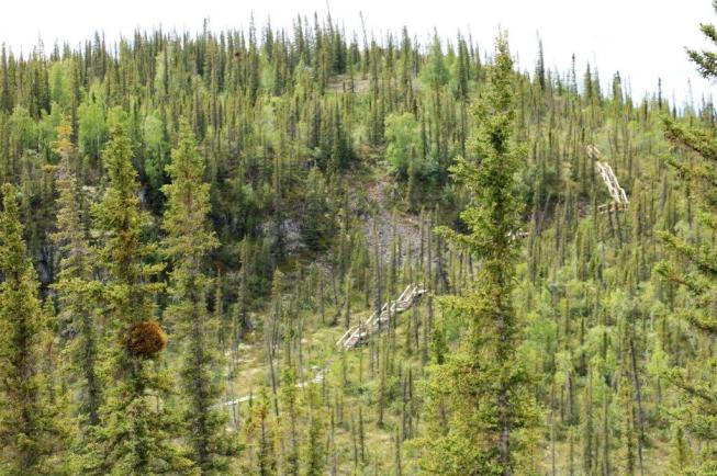 We were now driving in the Mackenie Lowlands ecoregion. When we crossed the border all of the mile markers in our little travelogue booklet started over at mile 0 since we are now on Northwest Territories roads. (It was 465 km – 289 miles – from Mile 0 of the Dempster Highway east of Dawson City to the Yukon/Northwest Territories Border. On the NT markers it is 272 km – 169 miles – from the border to Inuvik.)