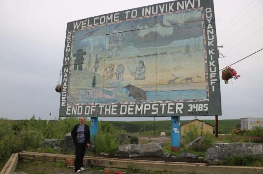 There were the same names over and over on many of the logs for the geocaches we found. Someone who goes by Turtle61 was on the same journey about two weeks before us and found many of the same caches. I was looking at the map before we left Inuvik and discovered a brand new cache had been approved the day before. It had been hidden by Turtle61 and was about 40 km north of Eagle Plains. We thought we had a good chance of being the first to find it and we were correct. The cache was hidden under one of these signs at a little pullout.