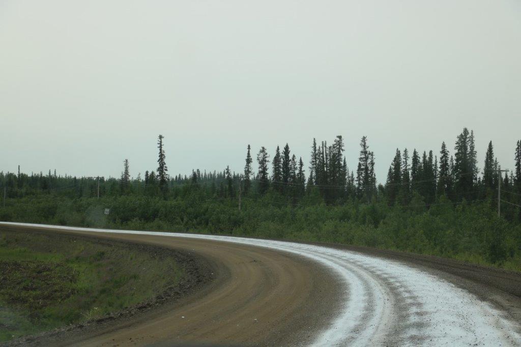 We also received our fourth rock chip in the windshield on this day. Every one of them has been caused by an oncoming motorist who is either unaware of the ‘driving courtesy code’ for gravel roads, or doesn’t care. John always drives closer to the edge of the road and slows down when meeting another vehicle. This reduces the chance of throwing up rocks into the other car’s windshield. When we pass another vehicle he stays in the opposite lane for quite a distance before pulling back into our own lane again for the same reason. Thankfully there is very little traffic up here so you are not in danger of causing any accidents by slowing down or staying in the wrong lane.