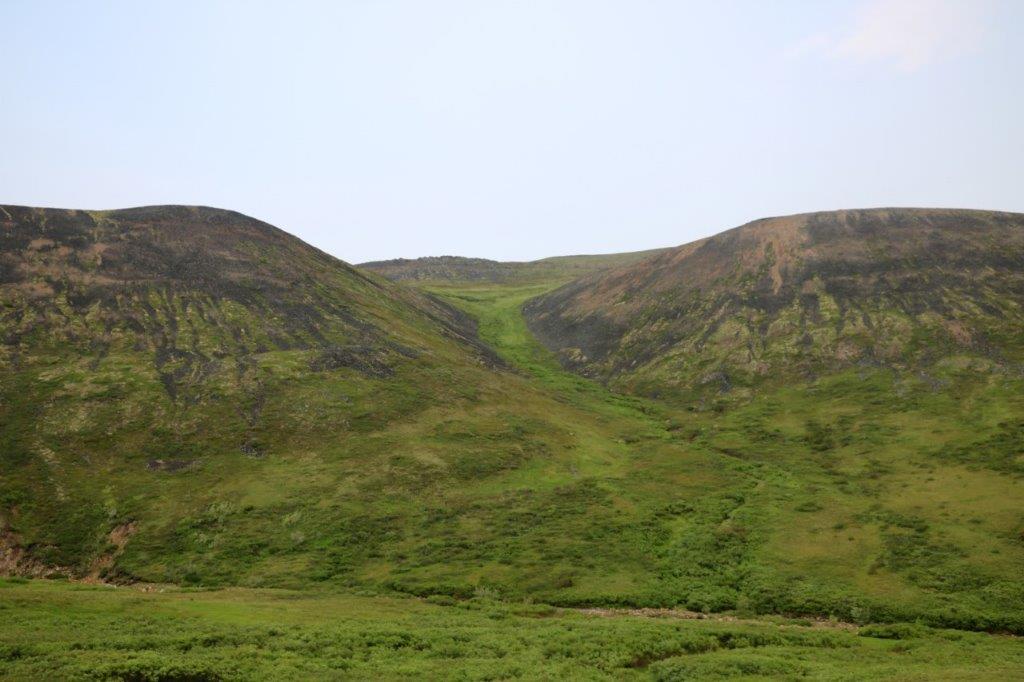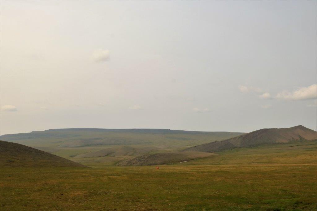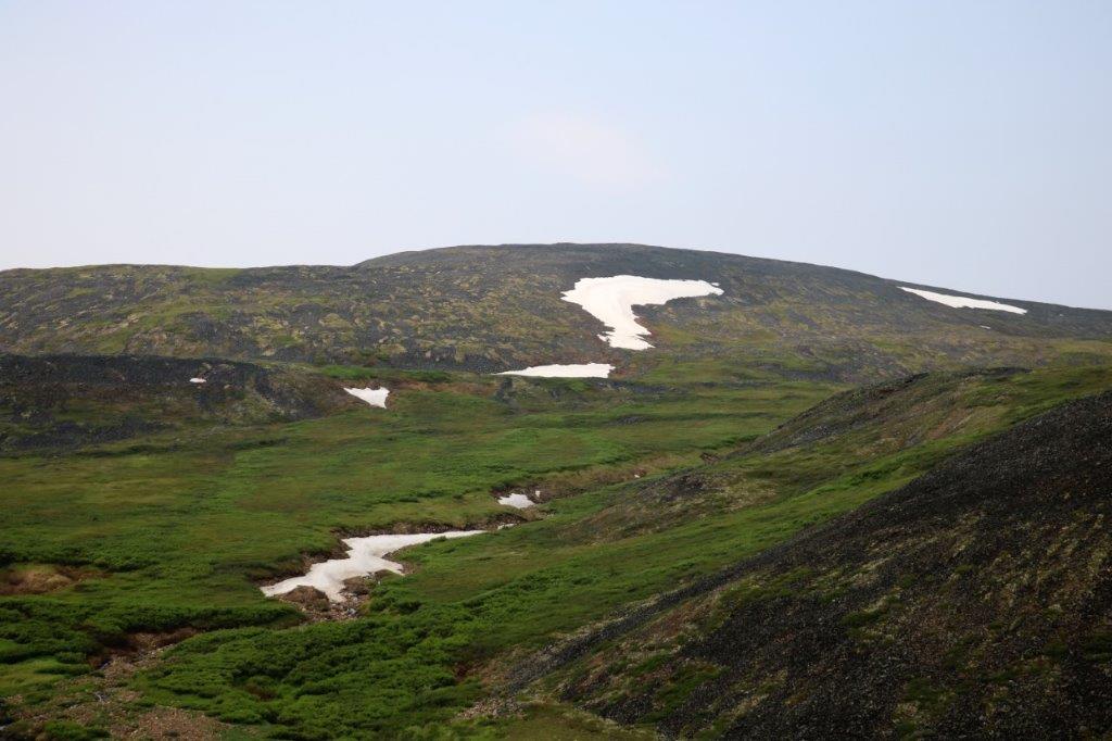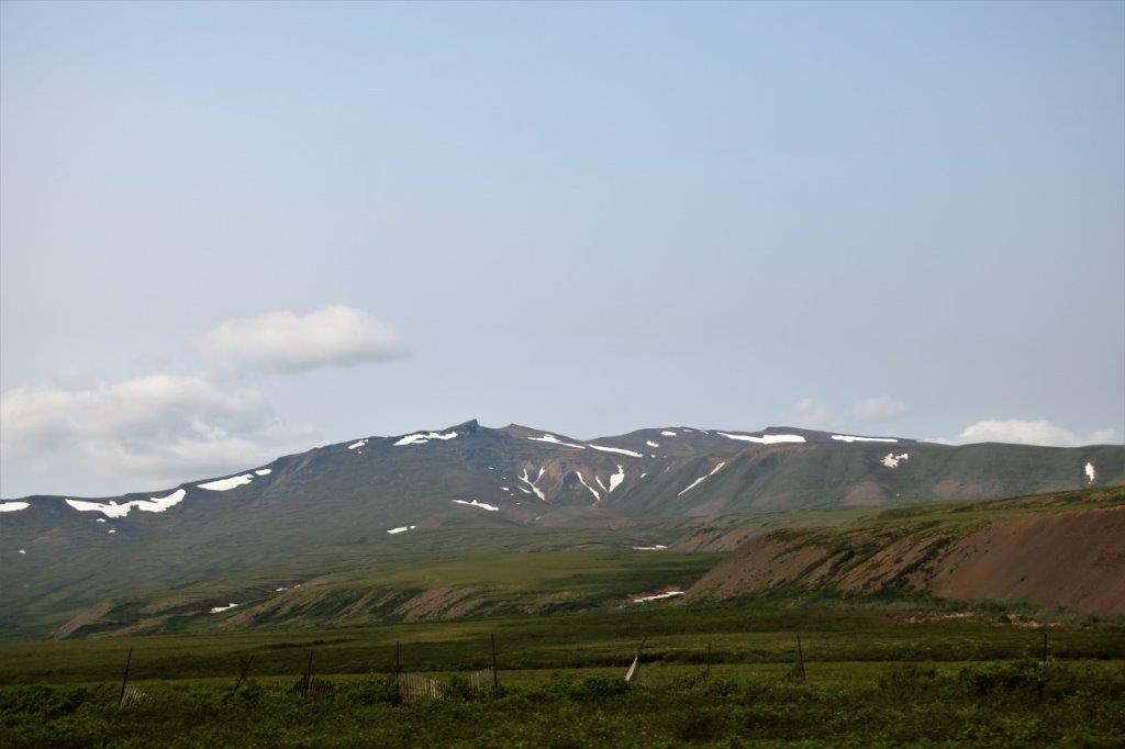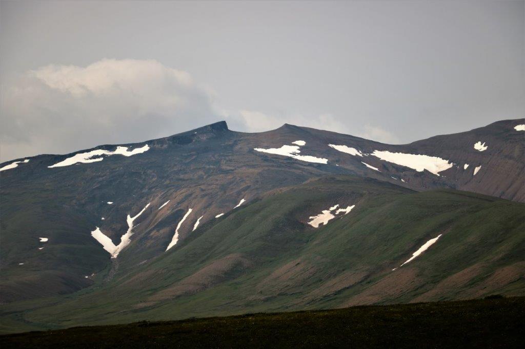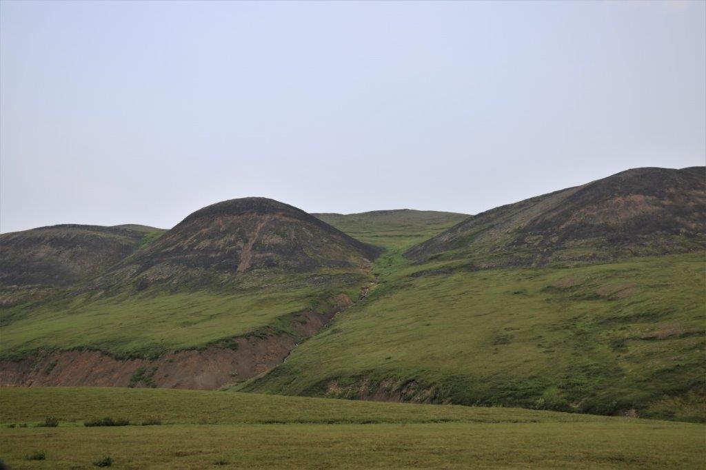 I had seen this very red rock on the far-off mountain as we drove up to Inuvik but it was on John’s side of the vehicle so I couldn’t get a good photo of it until we came back down.