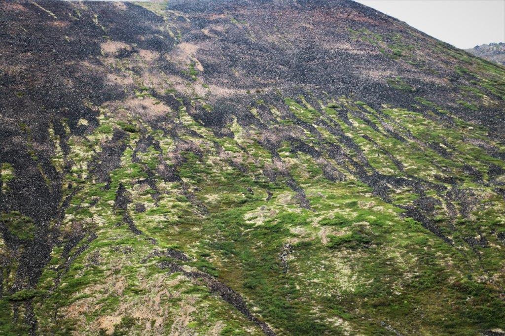 The patterns created by the mix of bushes and rocks that stream up the mountain side is so very interesting.