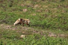 I was still fretting about the poor dog, so John turned the truck around and we went after him. When we caught up with him again he was just trotting along, not looking nearly so worn out as he had 10-15 minutes ago. He would not come near me and headed off into the bushes. We surmised he is probably feral and used to living out in the wilderness. He had no collar or tags at any rate. Hopefully he is okay.