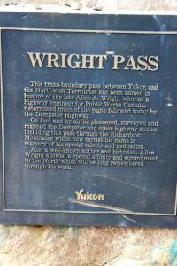 The Wright Pass takes you through the Richardson Mountains. The stitched photo below shows the scenery behind the monument.