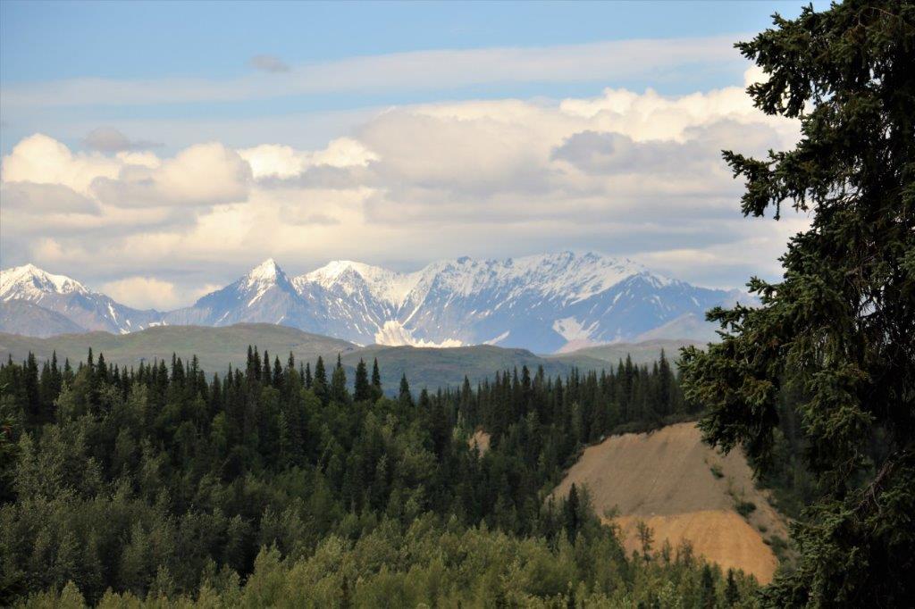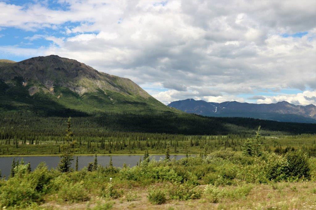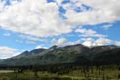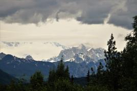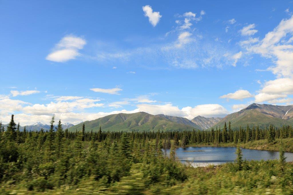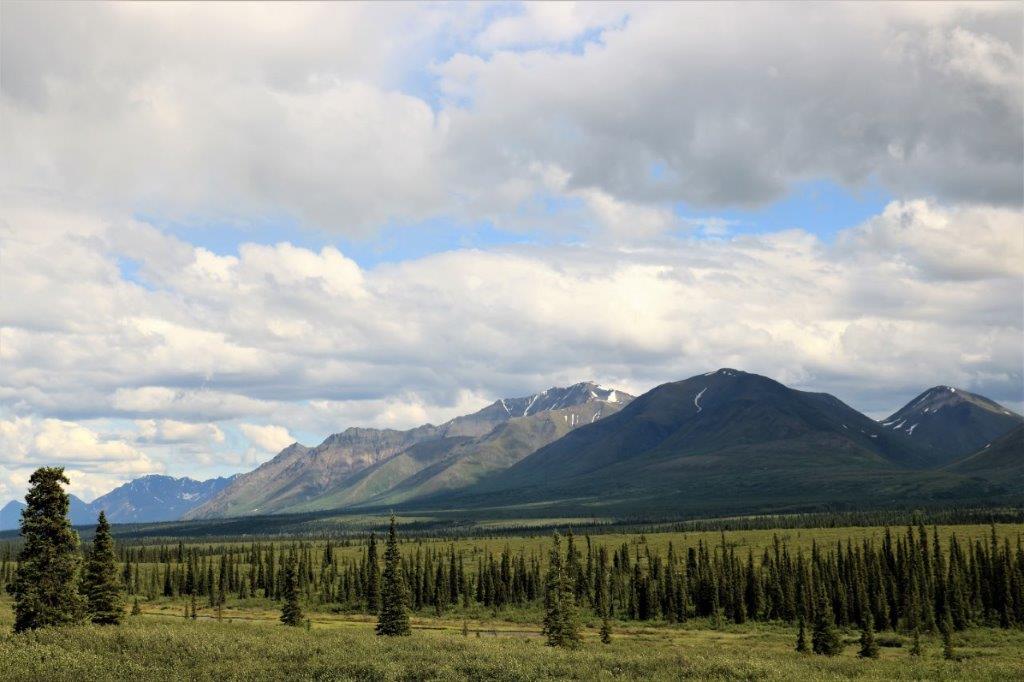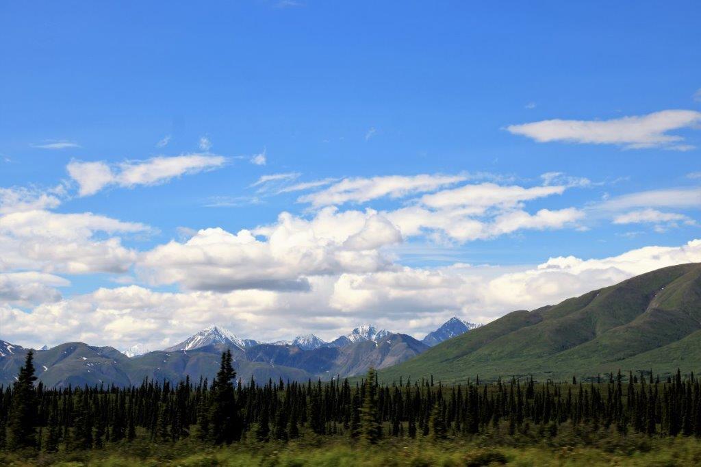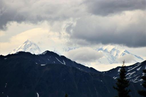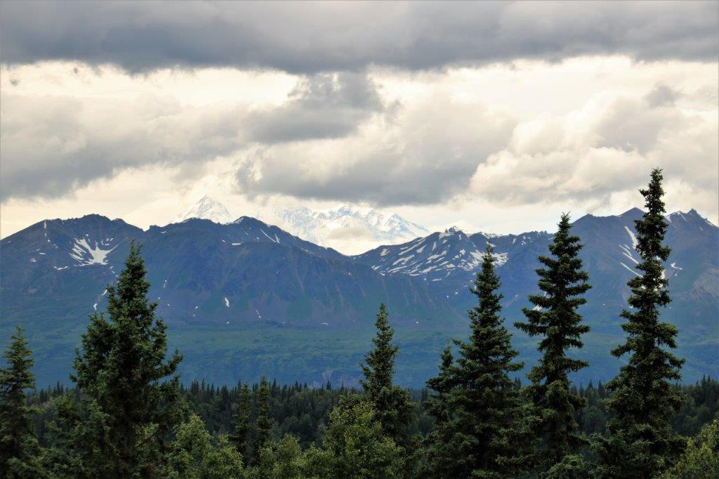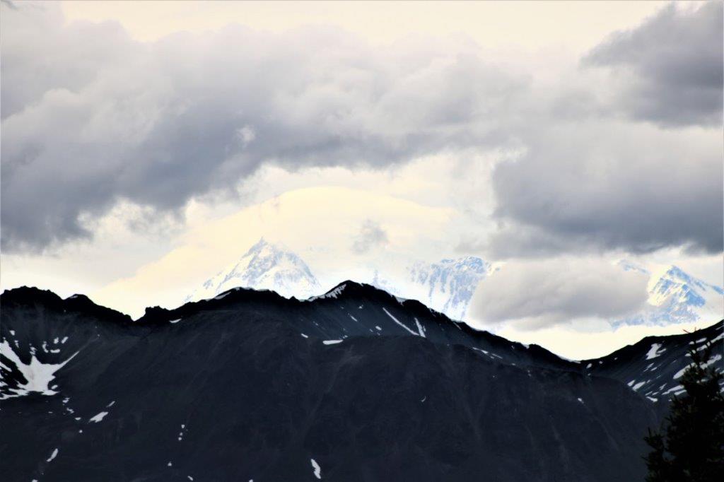 At the Denali State Park south of Denali National Park (about 160 km or 100 miles) there is a good view point to see Denali’s south face. We lingered there for quite awhile as the clouds slowly moved across the peak and finally got a shot of the northern peak clear of clouds.