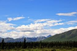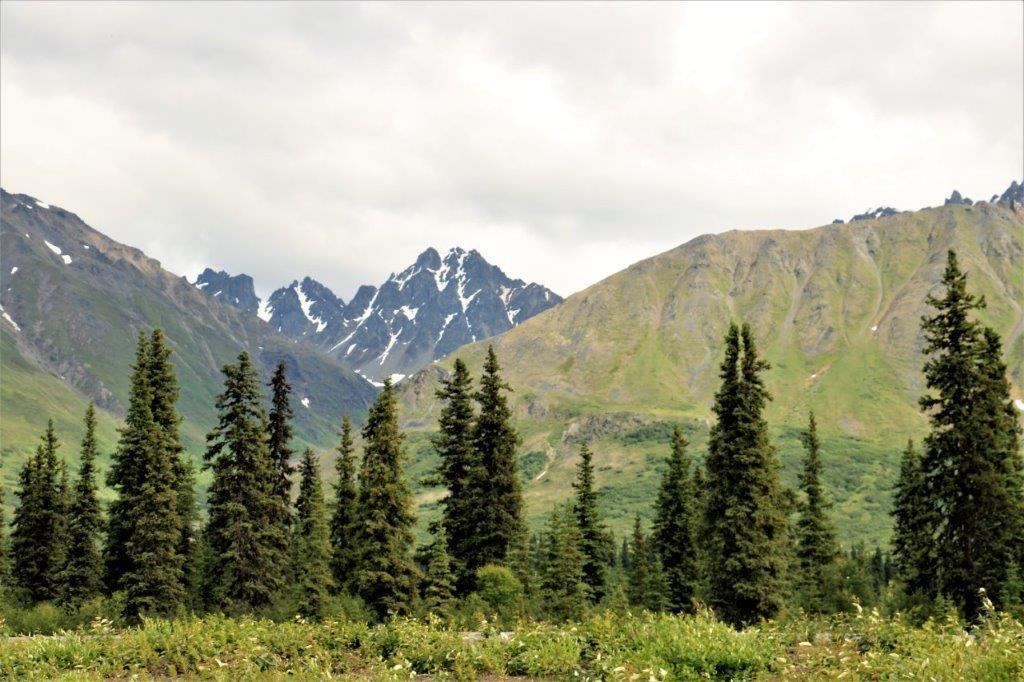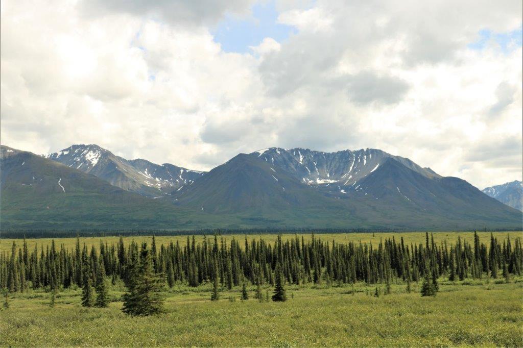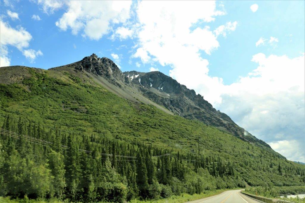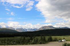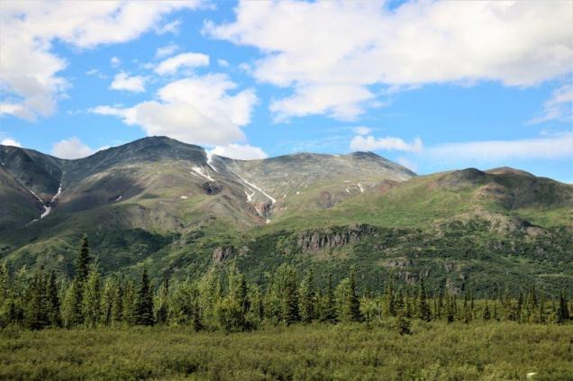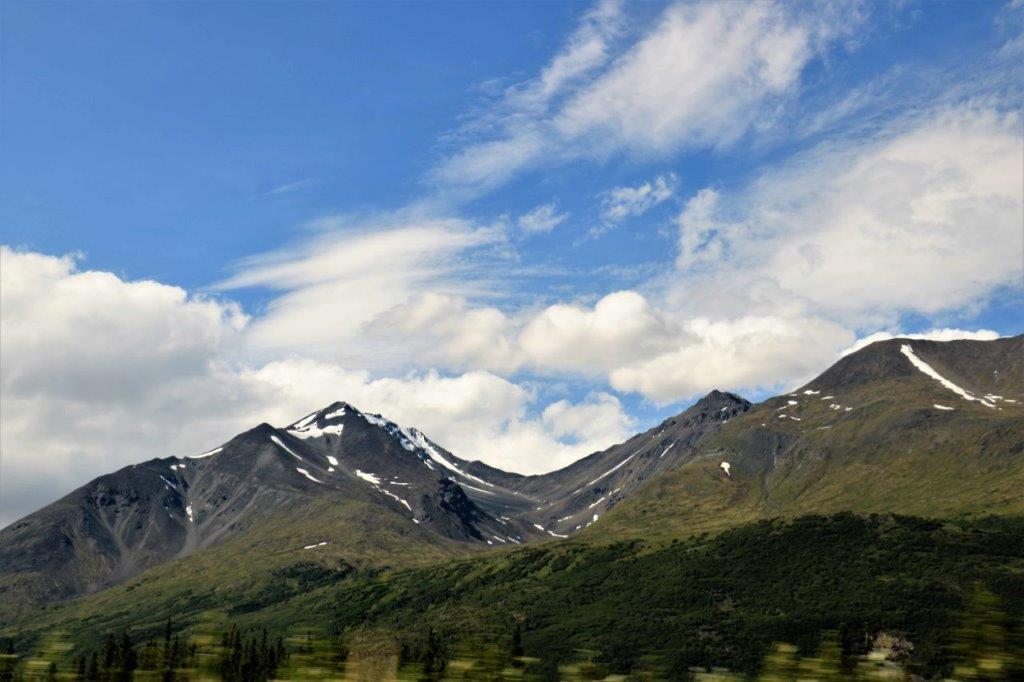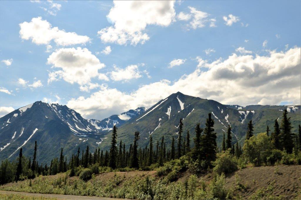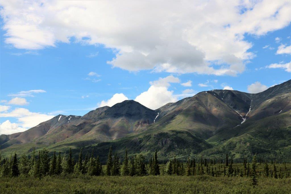 At the Denali State Park south of Denali National Park (about 160 km or 100 miles) there is a good view point to see Denali’s south face. We lingered there for quite awhile as the clouds slowly moved across the peak and finally got a shot of the northern peak clear of clouds.