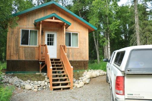 John had rented a little cabin about a mile or so up the spur road to Talkeetna and we arrived about 7 o’clock. The manager had been trying to call us to see if we were coming because it was getting so late, but we don’t have cell phone plans for the US so our phones are on airplane mode and he couldn’t reach us. All was well though. He hadn’t rented our spot to someone else.