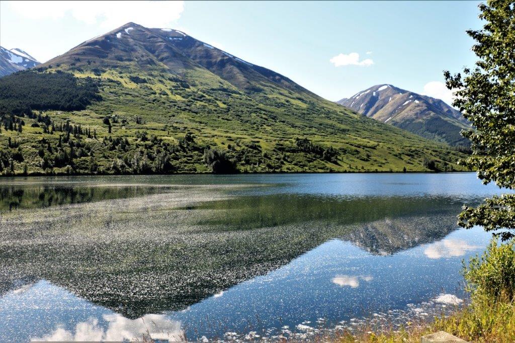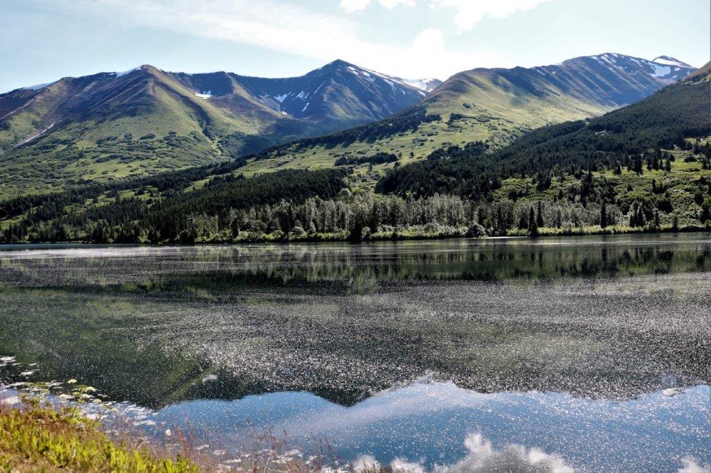Summit Lake was covered in pollen from the poplar trees. The effect was certainly pretty with the reflections.