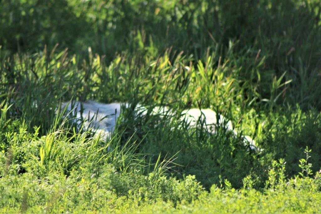 This was a good a view of the wolf pack we got. All four of them were sound asleep in the shade of the tall grass of their enclosure.