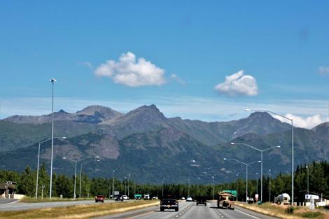 After seeing all the animals we were on the road again. Turnagain Arm was much prettier on the way back in the sunshine than when we drove over to the Kenai Peninsula under heavy clouds. All the nice mountains were on John’s side of the truck though, so very few photos ops for me.