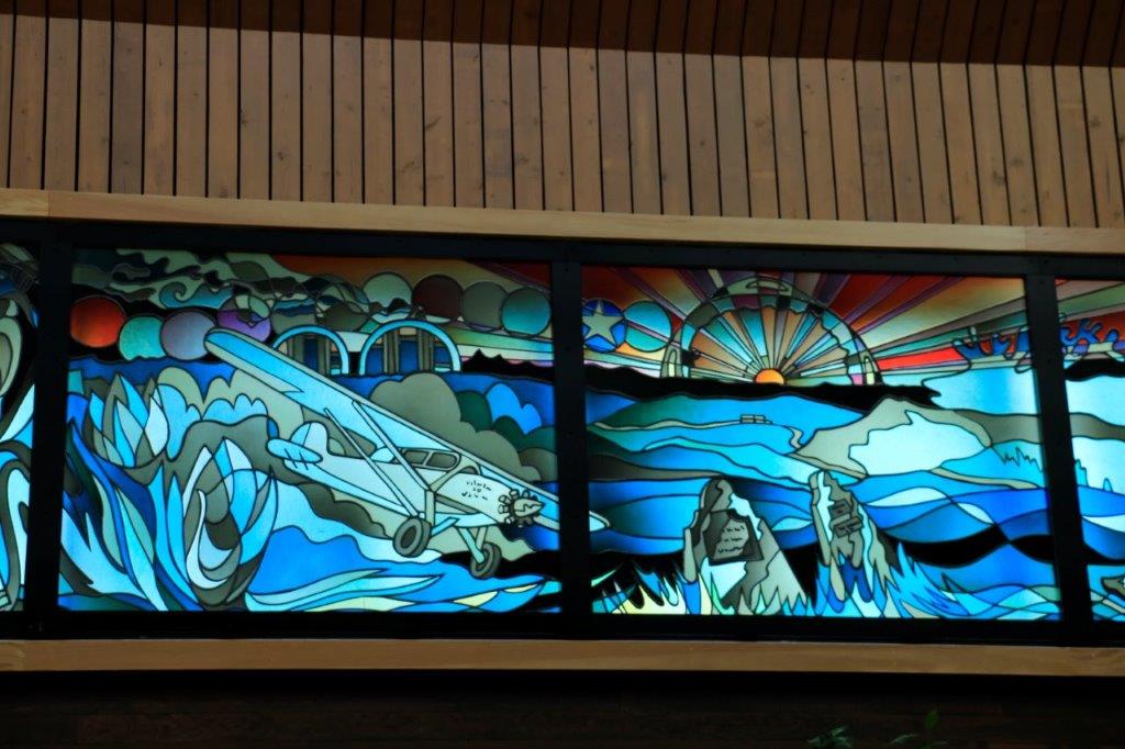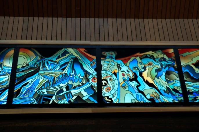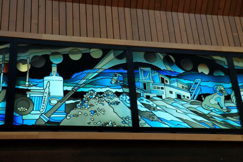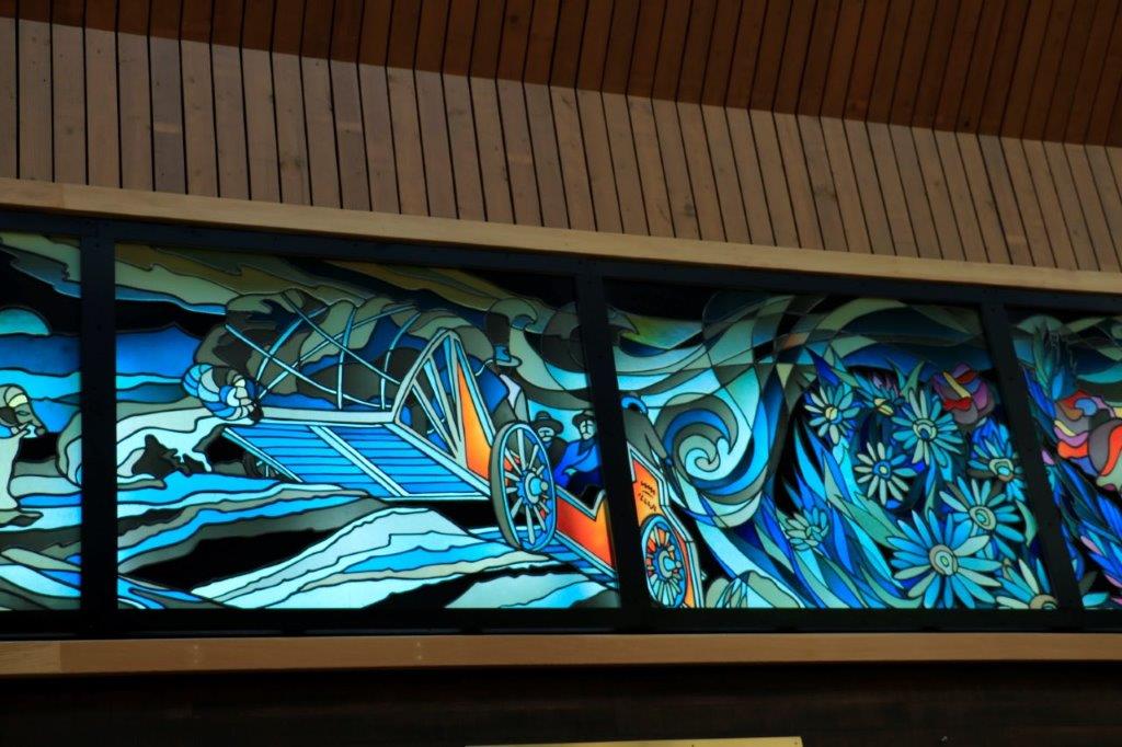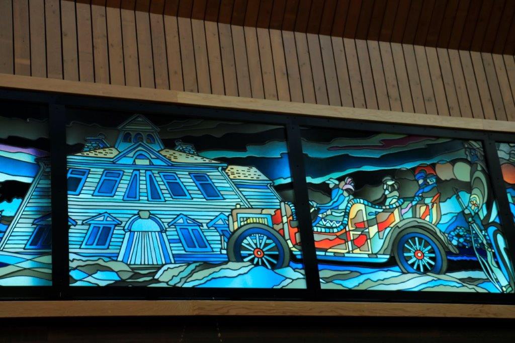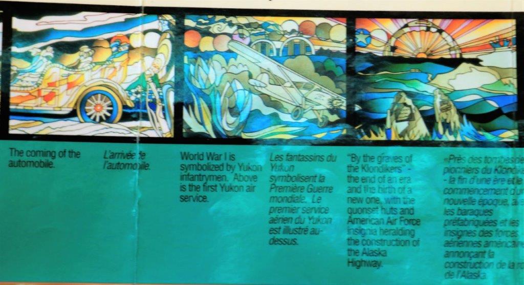 This acrylic resin glass-panel mural is 36 meters (120′) long and is among the largest of its kind in the world. All the panels told the story of the Yukon Territory and melded into each other as the years progressed. It was lovely.