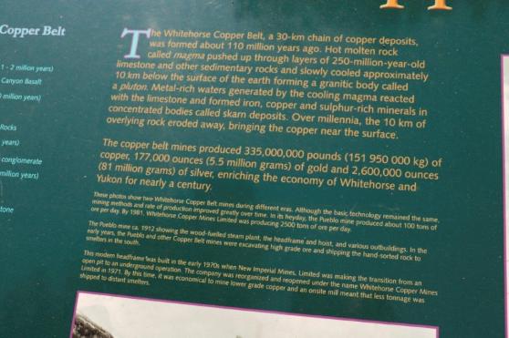 On our way out of Whitehorse when we were here before we stopped at the Whitehorse Copper Belt museum to check it out and find an earthcache. The museum was closed and we were unable to find all the information we needed to answer the questions required to log the cache so we decided to go up there again and find what we needed. The museum was still closed but we were able to find all the information on signs along the trails.