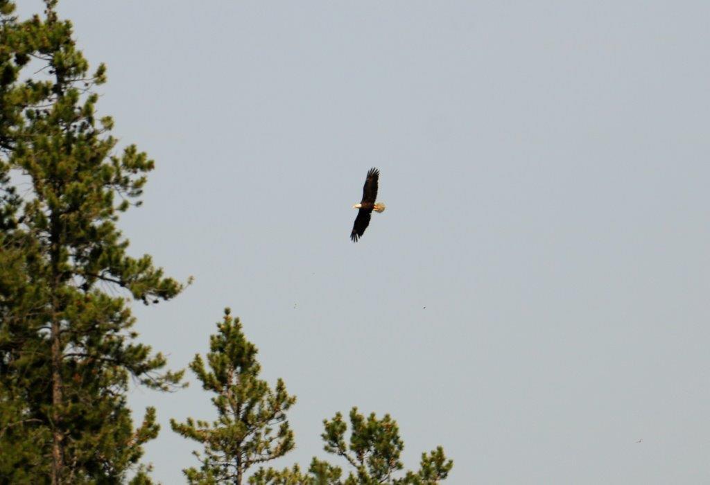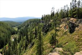 There were two regular caches near the museum as well and we saw that there was another one up the hill behind the museum. When we got to the pullout and walked over to the bluff there was a great view of a river meandering through the forest far below. Bald eagles nest in the area, and the constant caw of ravens could be heard.