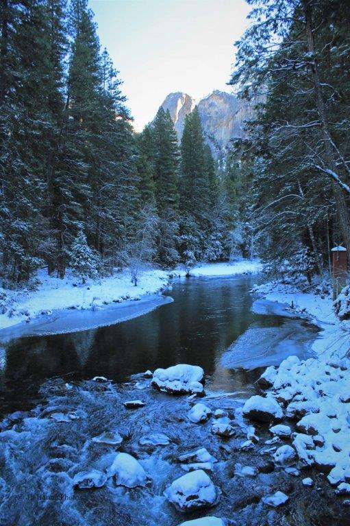 Most of the roads and trails are closed after November 1st but the main road into the village remains open all year. It was a beautiful sunny day and Half Dome, El Capitan, and Yosemite Falls were spectacular.