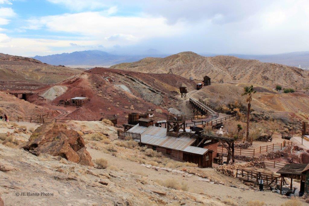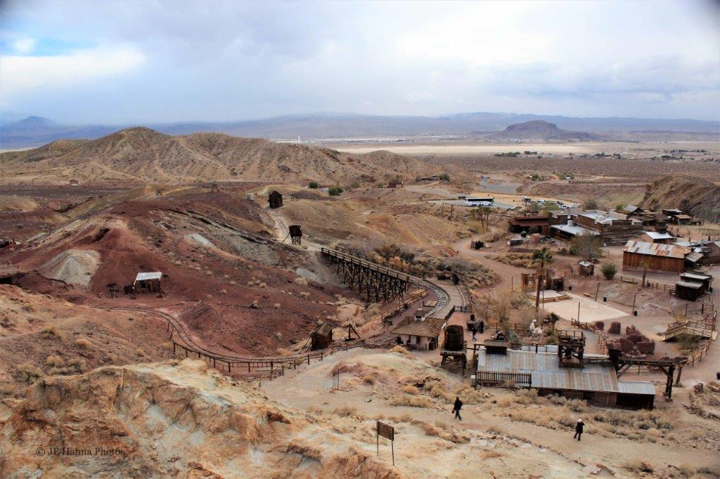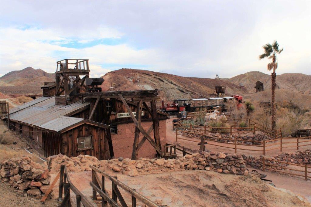 Calico was a mining town and several of the area’s mines are nearby. Also a section of the old railroad is still in operation on a short loop track for tourists to have a ride.