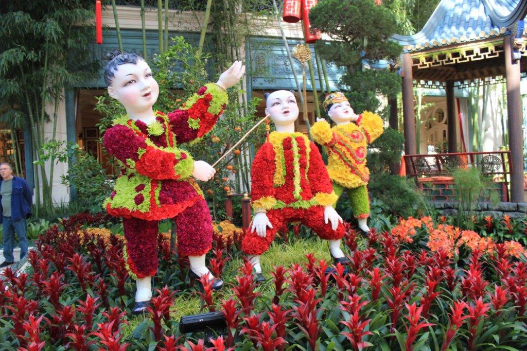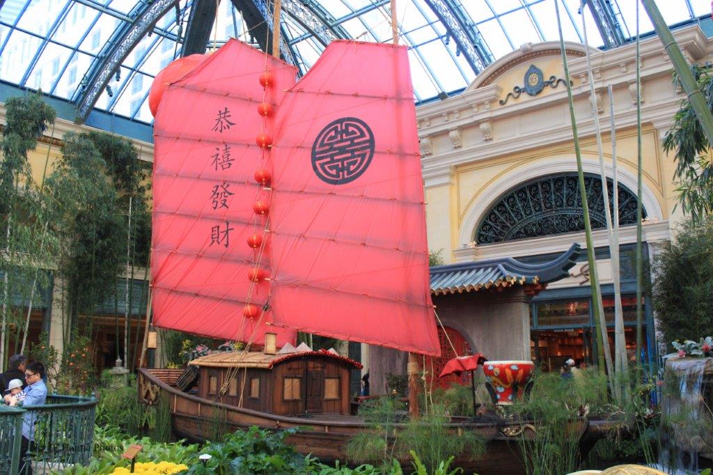 The inner garden at the Bellagio has changing themes. When we were there it was the Chinese Year of the Snake so the garden had lovely floral Chinese children and a Junk and a big snake with lucky coins.
