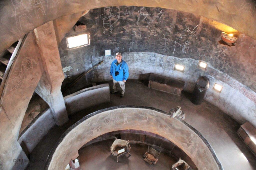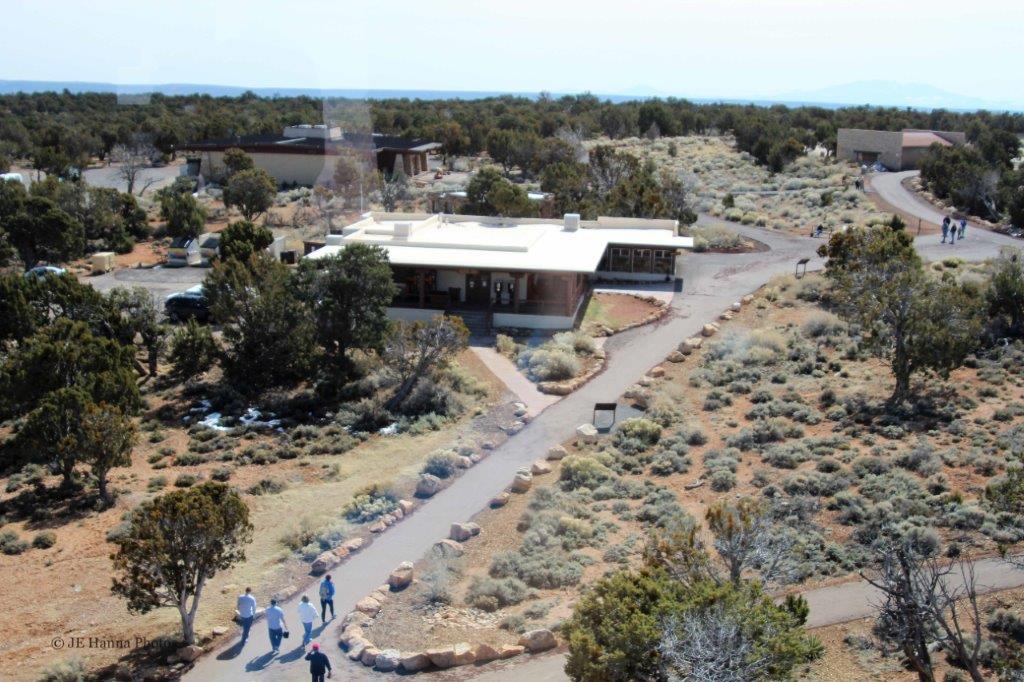 Looking down on the Visitor’s Center from the watchtower at Desert View. The watchtower was a mini-museum featuring Navajo art.