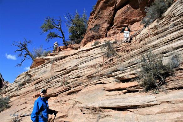 The beginning of the trail – up the rock face. Thank goodness for handrails.