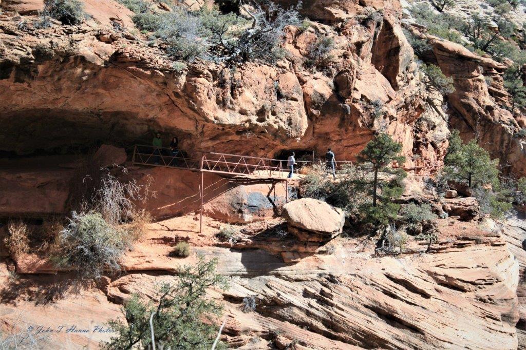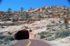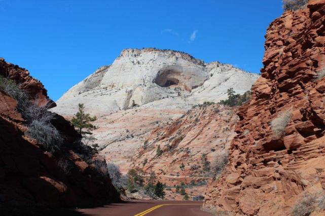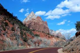 We drove the Zion-Mount Carmel Highway from the east entrance into the center of the southern part of the park and then went north on the Zion Canyon Scenic Drive. In the summer months the Scenic Drive must be taken by shuttle buss, but because we were there so early in the season we were able to drive the 10 km (6.2 miles).
