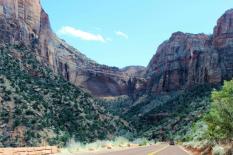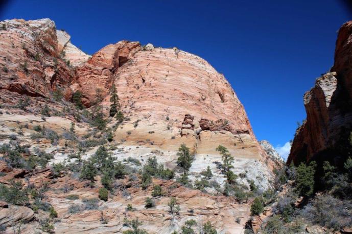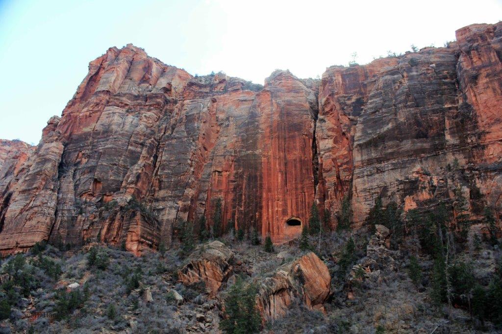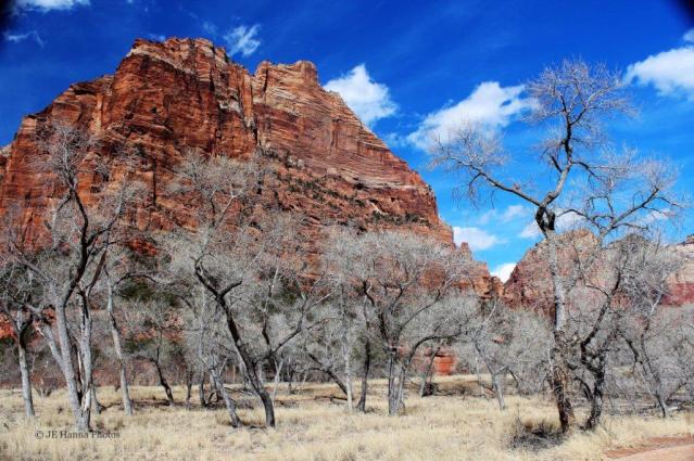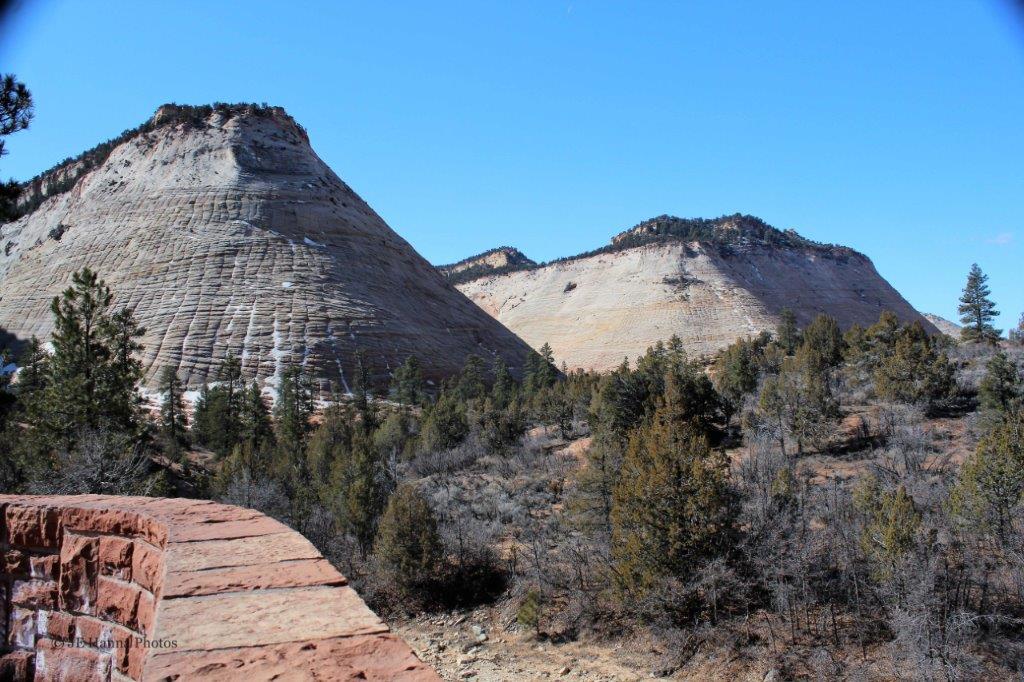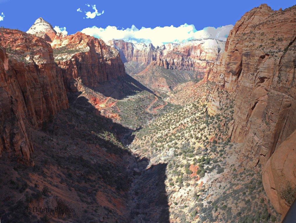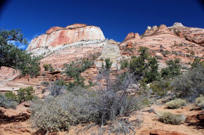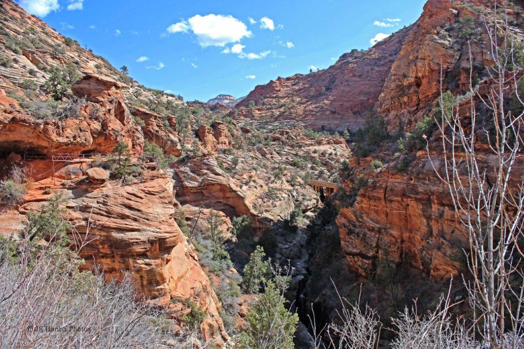 Not long after we crossed the boundary into Zion National Park in southwest Utah, I realized I had a problem. Every turn in the road, every twist of the head would bring into focus another amazingly colourful rock bluff or hill; or an interestingly-shaped stone pillar. Within a mile or so of our drive through the park I had taken dozens of photos. Now, in the age of digital imagery this is not a major problem, since you don’t have to pay to get them printed, but it did create a great deal of photos to go through and choose what to keep. This too, is not a big problem if you are at home with all the time in the world to go through them, but back in 2013 I was not writing a blog, I was posting each day’s photos on Photobucket in the evenings for family and friends at home. Which, with hundreds of photos to go through in the hotel each evening made for some late nights, or skipped uploads. Not a big deal except for my CDO tendencies.
