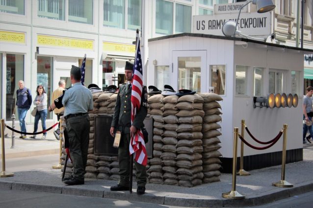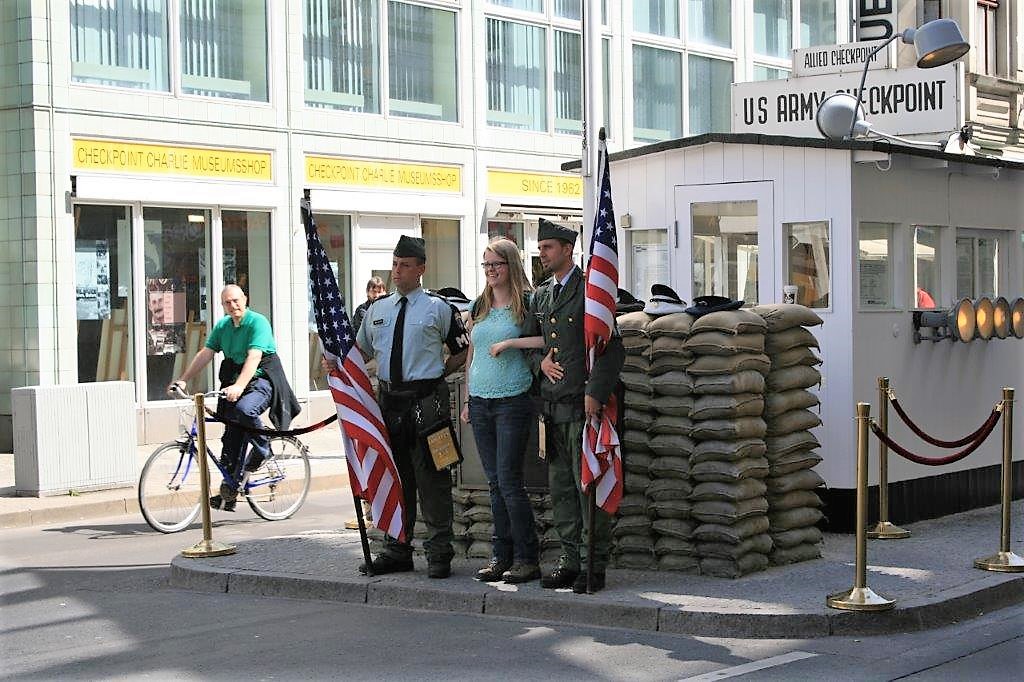 At the location of the famous American “Checkpoint Charlie” border crossing there is an opportunity (for a fee, I am sure) to have your photo taken with some men posing as American soldiers.