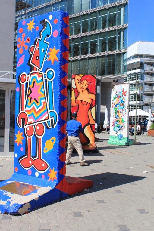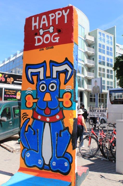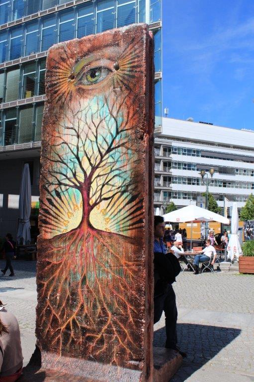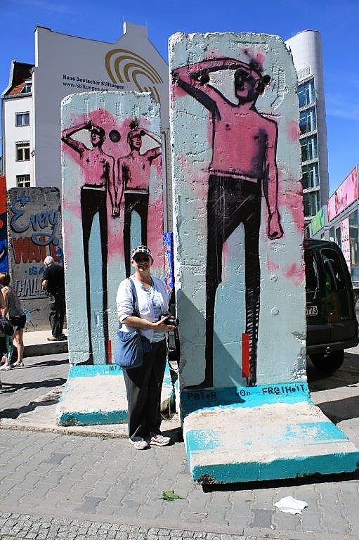 We were taken first to the site of the infamous Berlin Wall. It seemed to me growing up that the Wall was always there dividing socialist East Berlin and East Germany from West Berlin’s democratic part (supposedly to protect it from “facist” elements that would “conspire” to prevent the will of the people in building a socialist state). What it did in reality was cut off, by land, the West Berlin part of the city from the rest of the world. The city was cut in half but the free western portion was surrounded by East Germany so you could only get into West Berlin by air. Construction of the wall began August 3, 1961. As well as the wall itself there was a very wide open section on the Eastern side of the wall. This became known as the “death strip” as anyone who was seen there was shot.