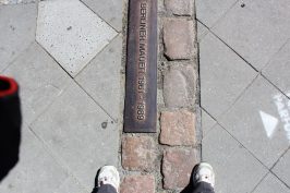 The demolition of the wall began June 13, 1990 and it was completely removed by 1992. However, the history remains. There is a copper strip in the pavement that marks the former location of the wall.
