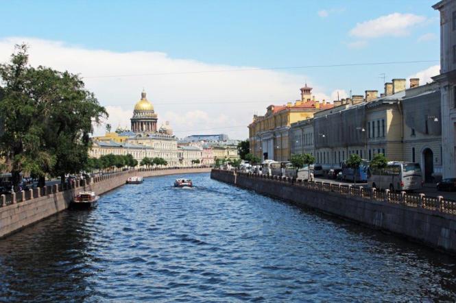 Looking back at the palace from the end of the grounds. After our time at the Summer Palace ended we boarded a hydrofoil and were taken back to St. Petersburg.