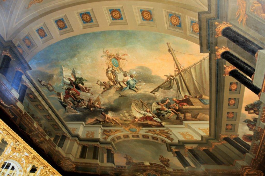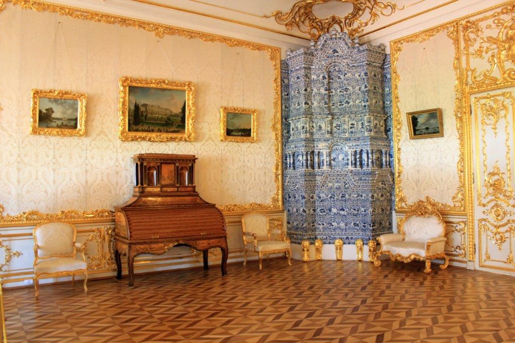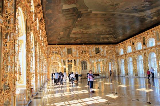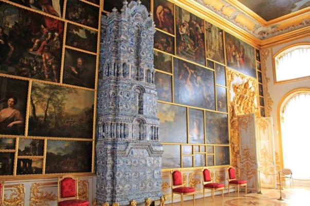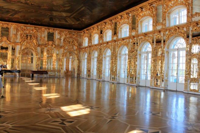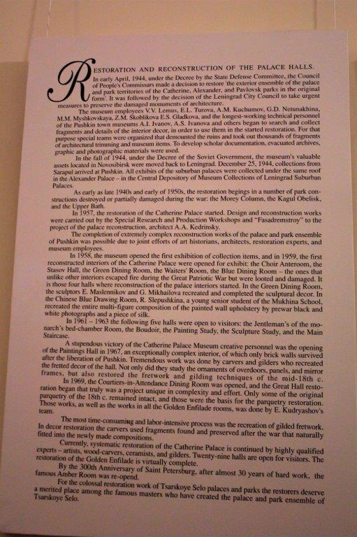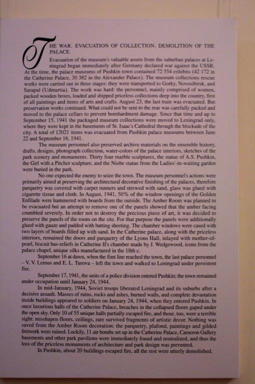 This huge building and park-like grounds were almost completely destroyed during WWII and throughout the building they had images of what the various rooms looked like before they were restored. 57 of the massive halls were ruined and over half of the building has now been painstakingly restored its former grandeur. Thankfully, unlike the Summer Palace in Peterhof, we were able to take photos inside.