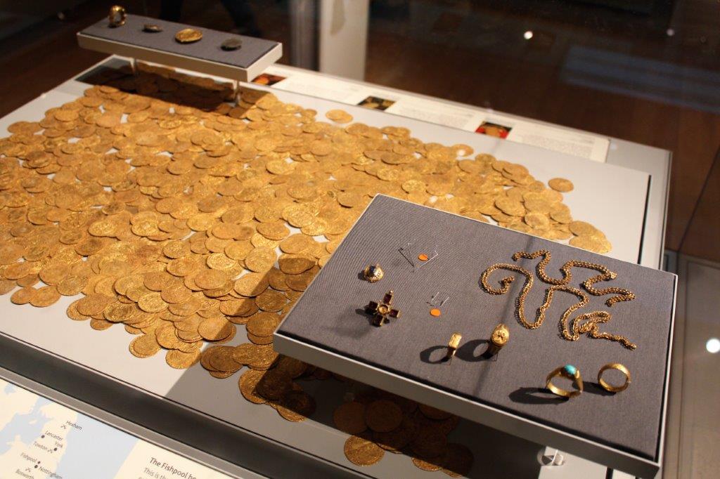 One of my favourite displays is the many hordes of gold coins, jewelry, and other items that have been discovered in farmer’s fields all over the British Isles. There would be some fascinating stories if the items could tell why they were buried and by whom. I took photos of many of the collections but have just posted one here.