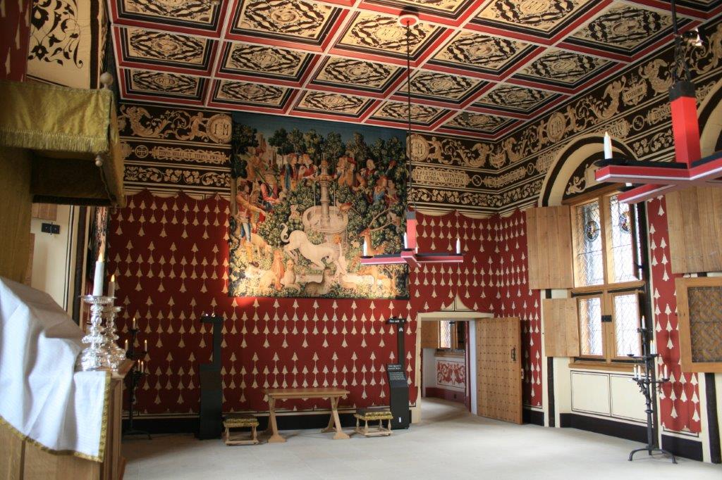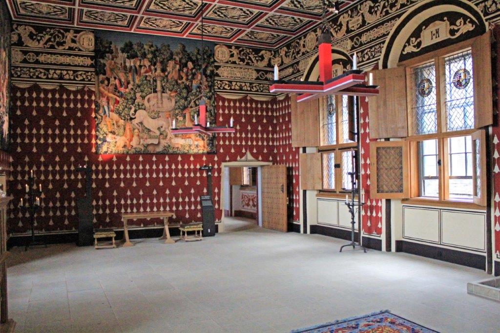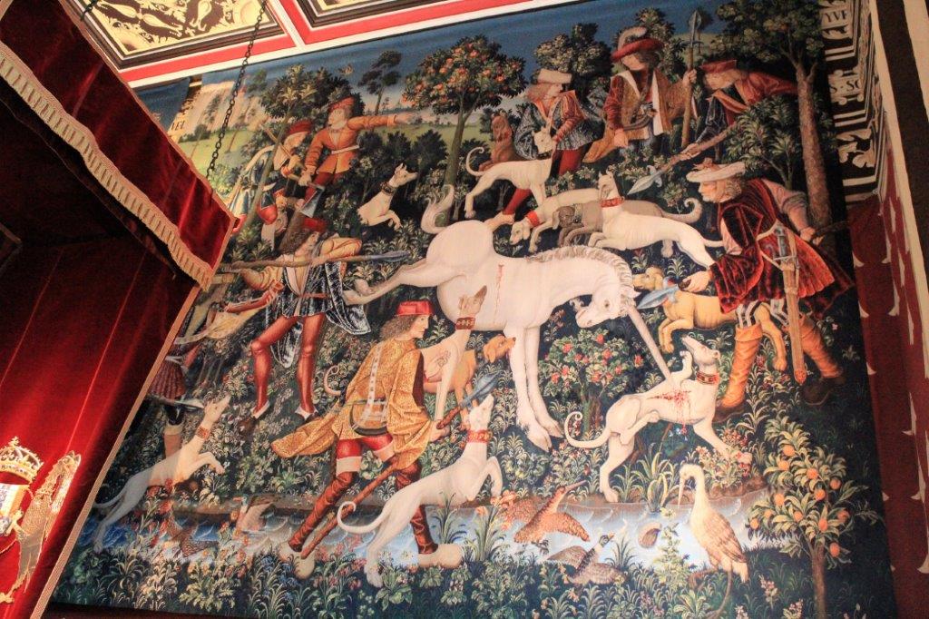 These beautiful tapestries tell the story of the Hunt of the Unicorn. There are seven tapestries in the series and a group of 18 weavers took 14 years to complete these reproductions of the originals that used to hang in the hall. The project was commissioned by Historic Scotland as part of their efforts to restore Stirling Castle to the era of King James V reign in 1540. We did not see the completed series as the last tapestry was not finished until 2015.