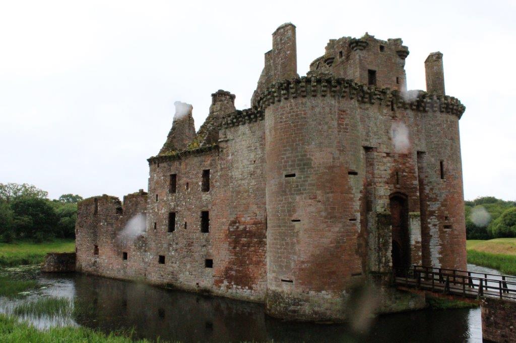 Just a bit west from Ruthwell Church, on the coast where the River Nith enters Solway Firth is Caerlaverock Castle (pronounced Cal a vé rick), one of most unique and smallest castles that we visited on our trip. Caerlaverock Castle was built by Sir John Maxwell in 1220! It was one of the first stone castles built in Scotland.
