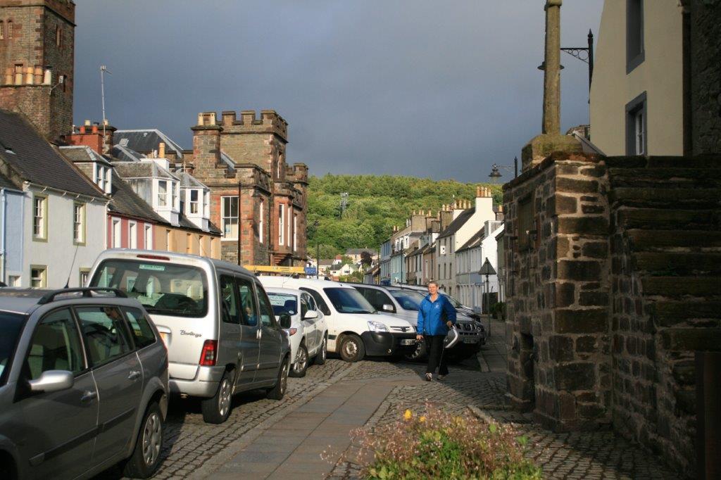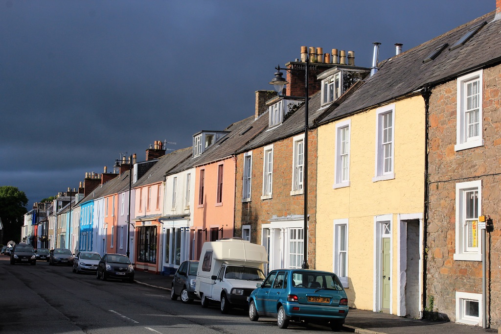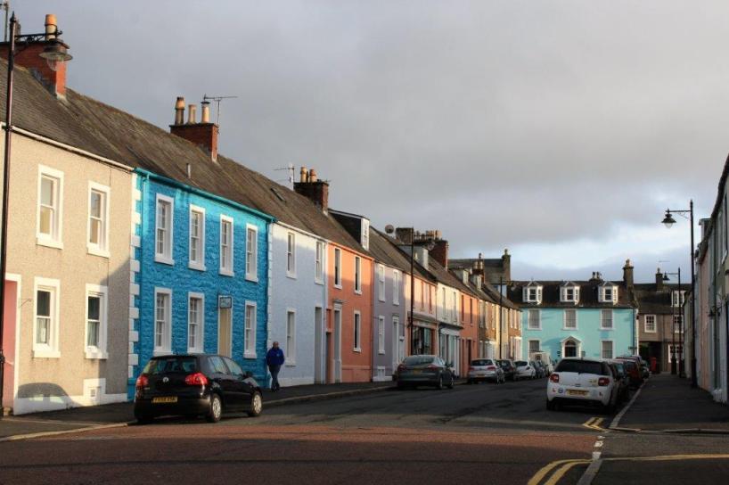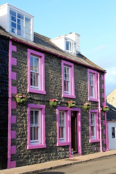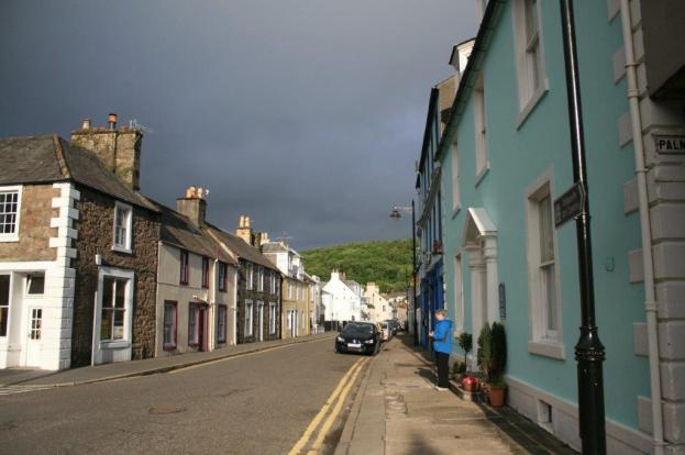 We arrived at our B&B in Kirkcudbright at 6 o’clock. After we settled in and had some dinner we went for a walk around town. The light was lovely and it was a beautiful evening; and I loved all the colours. We met a lady on the street and I asked her how the name of the town was pronounced. In normal Scottish fashion they leave out or run over most of the letters. It is Ke-coo-bree. I would never have figured that out.