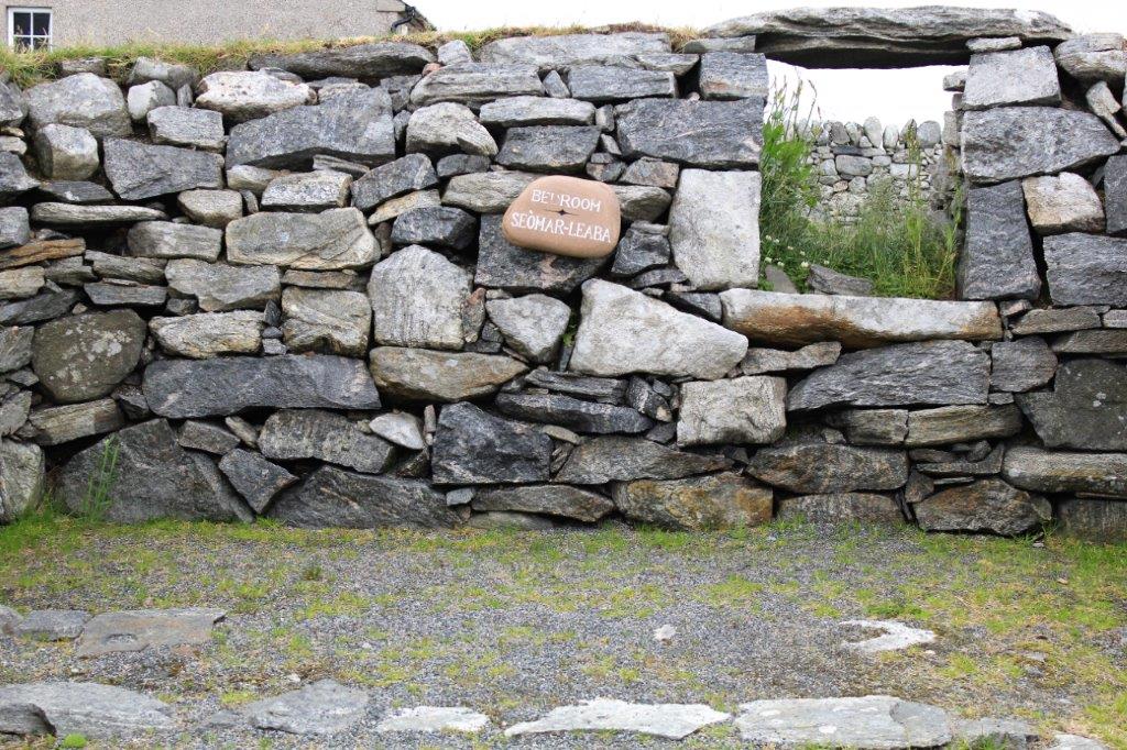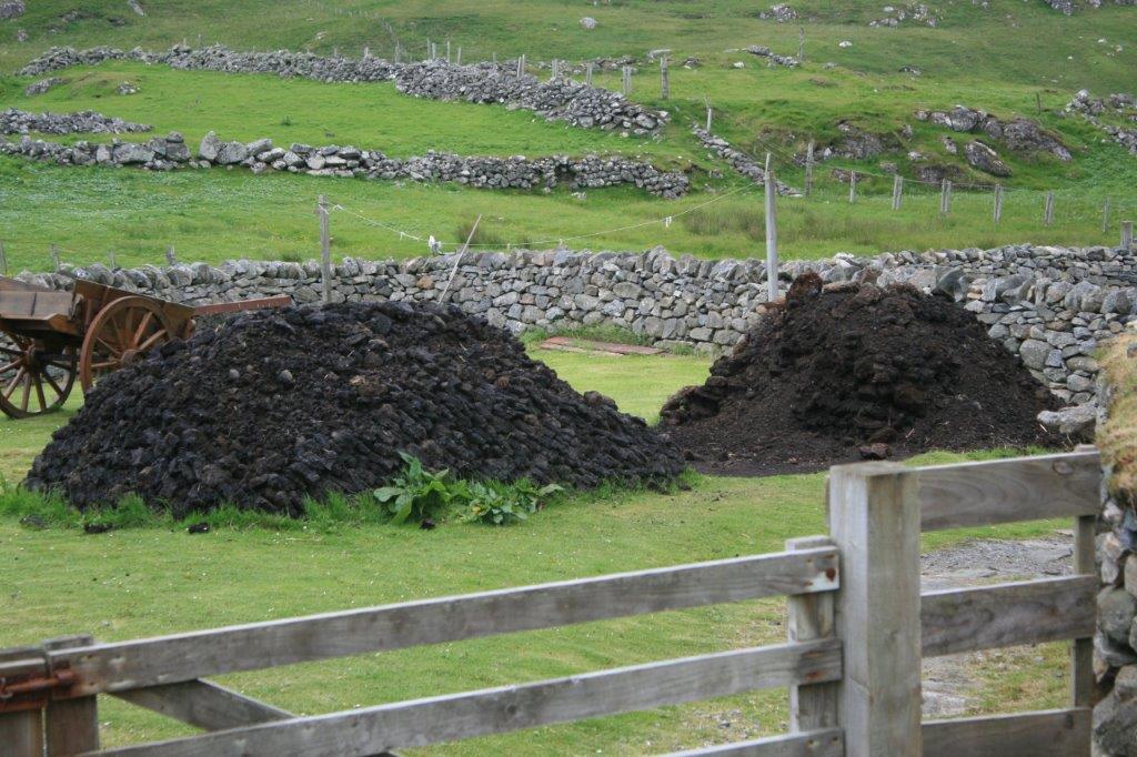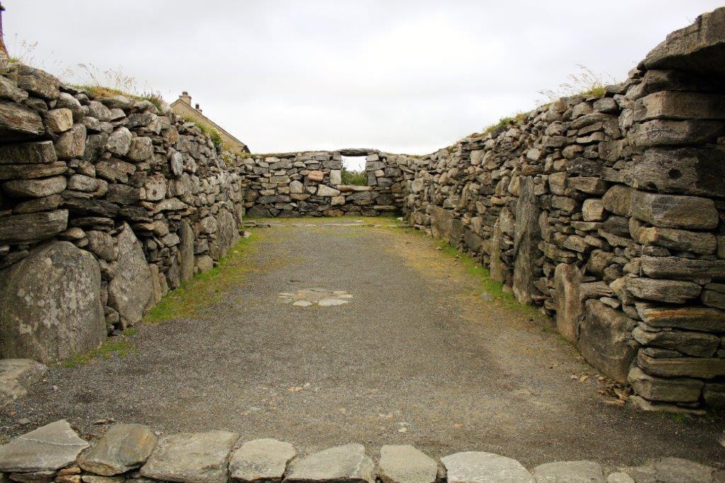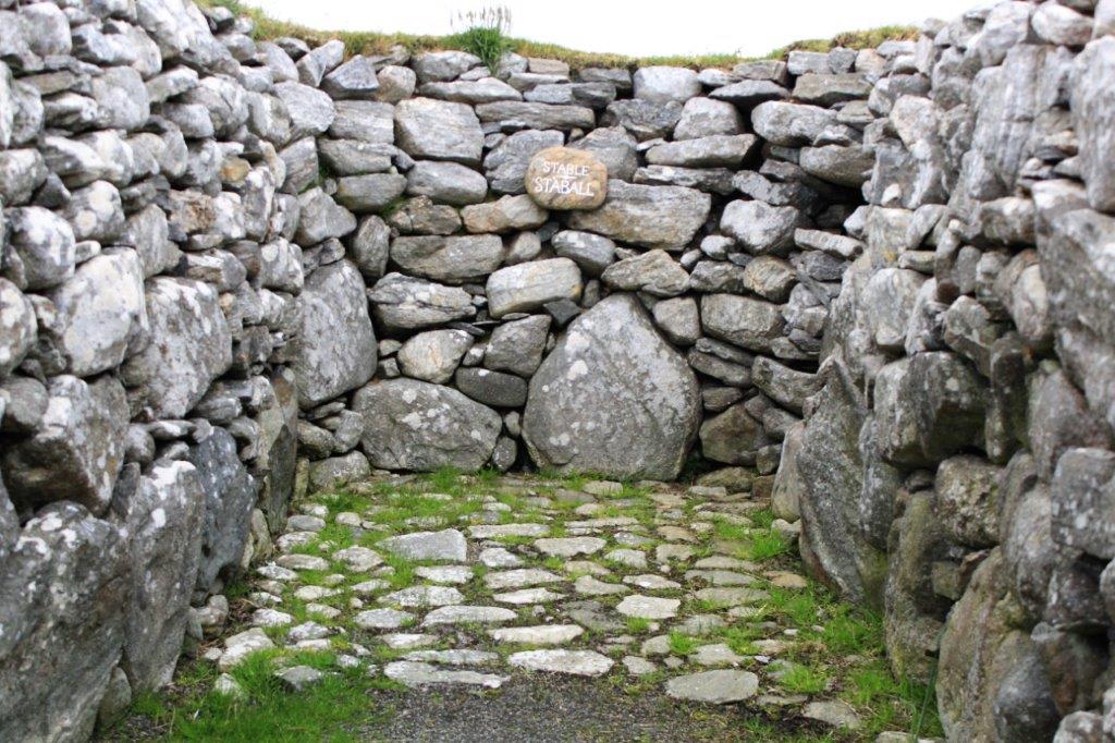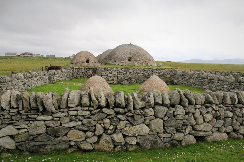 The Blackhouse was a residence for both animals and humans. There was no chimney and a peat fire was lit at all times in the center of the kitchen and living area. The dwellings had thick stone walls and thatch-covered roofs. Looking at the Blackhouse from the outside it is long and narrow, and its main feature is a thatched roof made of twigs and heather and overlaid with straw. The building is constructed from local stones with no cement between the stones. The thick stone walls and earthen floor absorbed the heat of the fire. The earth core of the walls was good for insulation and also served to keep out draughts, and the chilly winds. The turf and thick thatch, heavy with soot, were also good insulators.
