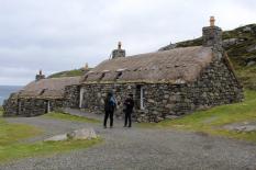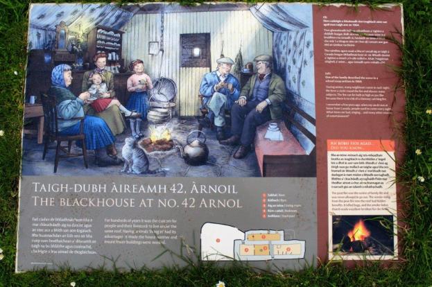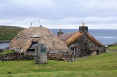 We spent all day on the Isle of Lewis, first visiting the Calanais Standing Stones and then Doune Broch, a stone roundhouse. By mid-afternoon we were at the Black House Village Museum, a collection of old stone houses. The village of Arnol has moved several times, from the seashore further inland in 1735, and a few more moves over the years, until it reached its current site on the ridge in 1853.