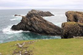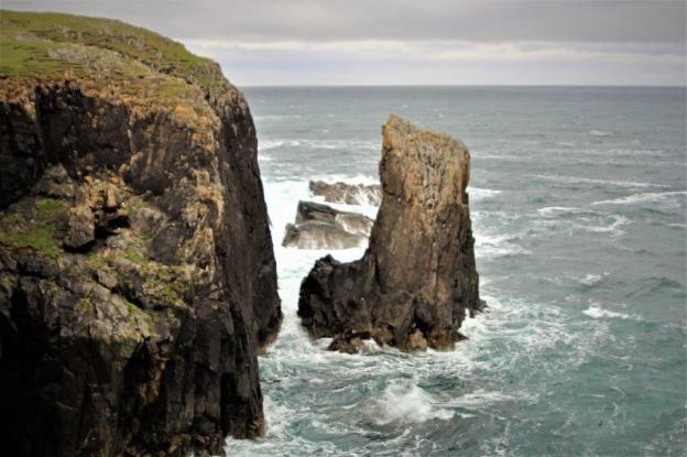 This northernmost point of Lewis in the Outer Hebrides lies in the North Atlantic, and is frequently battered by heavy swells and storms and is marked by the Butt of Lewis Lighthouse. The sight of all the rocks offshore and the strong winds of the north confirms why a lighthouse was needed up here.