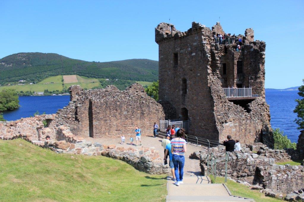 About halfway down the west coast of Loch Ness lie the ruins of Urquhart Castle. Urquhart was a very strategically important fortress; located as it was on a rocky promontory jutting into the deep waters of Loch Ness. The castle changed hands several times over its 1,000 year history and when the last soldiers marched away in 1692 they blew up part of the castle as they left. The ruins are extensive as the castle was added to and re-fortified many times.