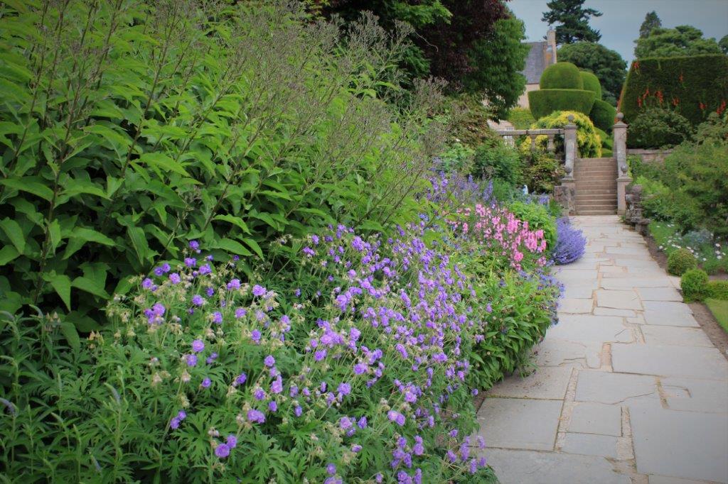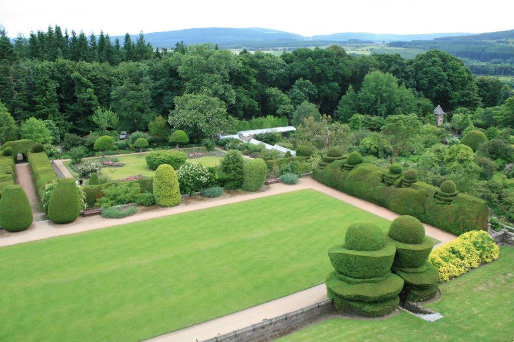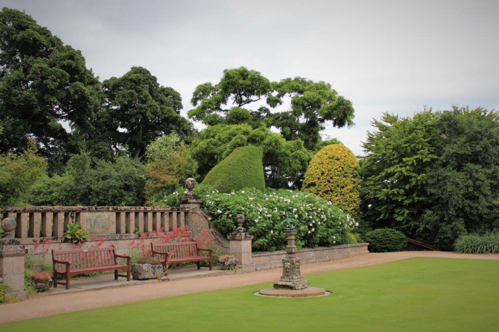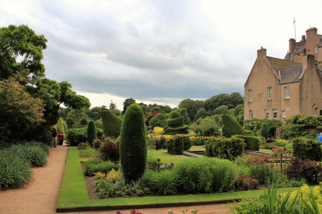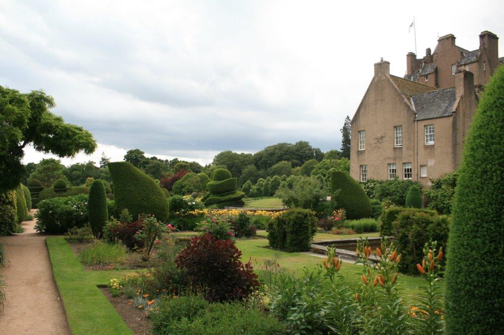 July 9th was a busy castle garden day. After we left Drum Castle we drove a short distance west to Crathes Castle. The lands at Crathes were granted to Alexander Burnard, forester at Drum by Robert the Bruce in 1323. That is what one calls a bit of history.