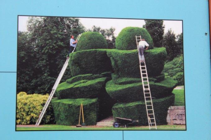 I am sure they got asked so often about how they clipped these huge shrubs that they posted a photo to show how it is done.